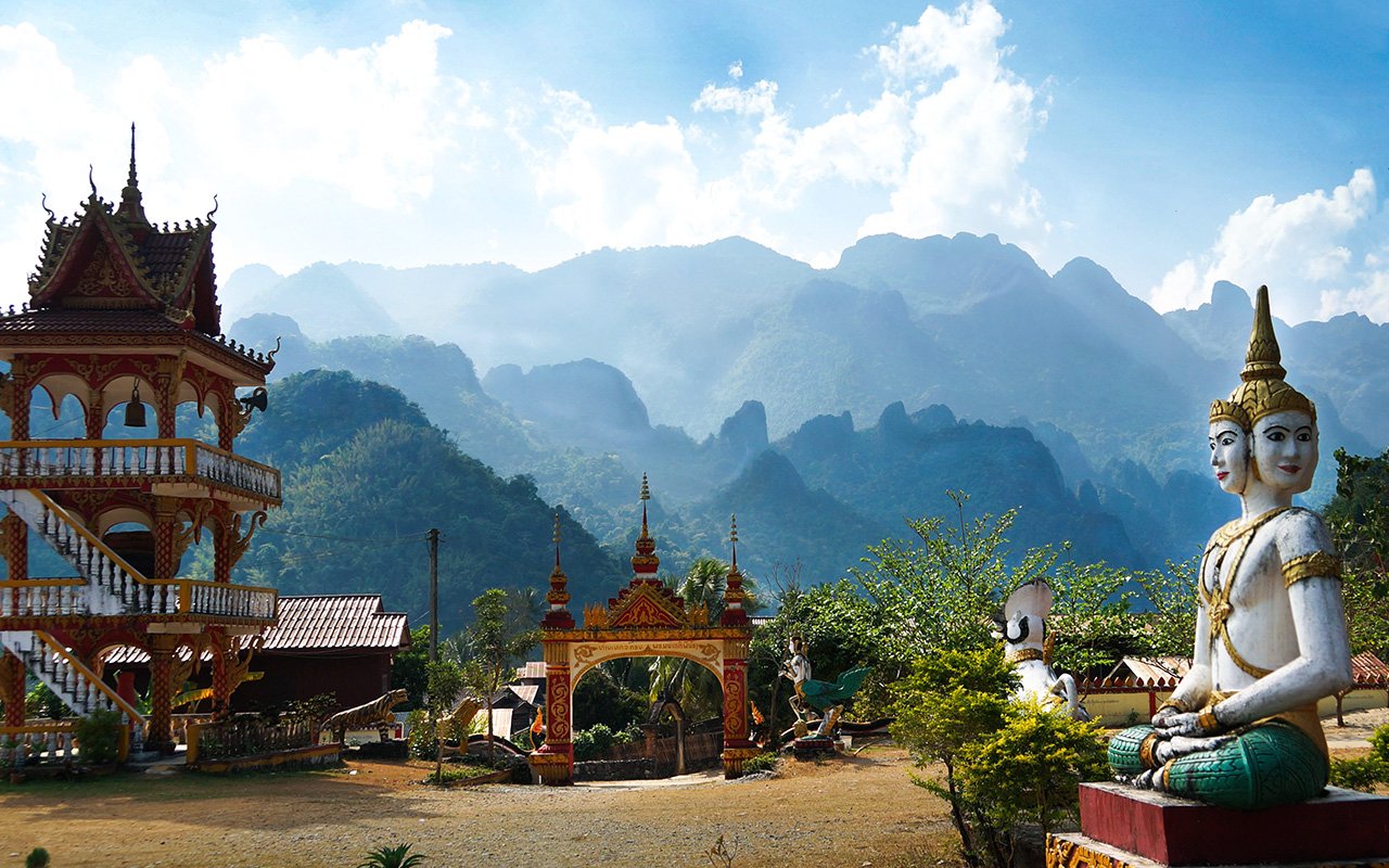 Vang Vieng, muhteşem kireçtaşı dağları ve nehirleriyle macera tutkunları için ideal bir yerdir.