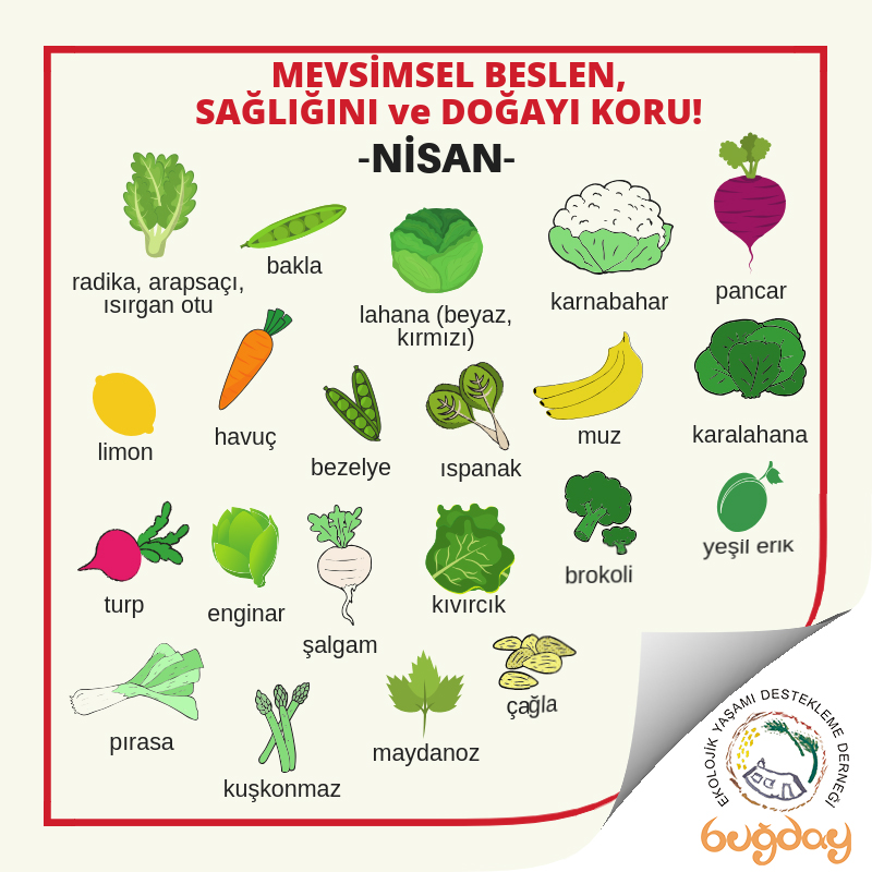 - Nisan ayı, turunçgillerin bazı türlerinin hâlâ meyve verdiği bir dönem olabilir. Bu dönemde narenciye meyveleri, özellikle güney bölgelerinde mevcut olabilir.