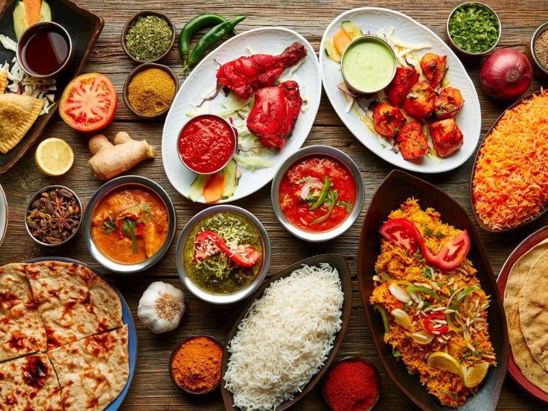 - Sebzeler ve Meyveler: Patates, karnabahar, patlıcan, ve çeşitli yeşillikler Hint yemeklerinde bolca yer alır.
