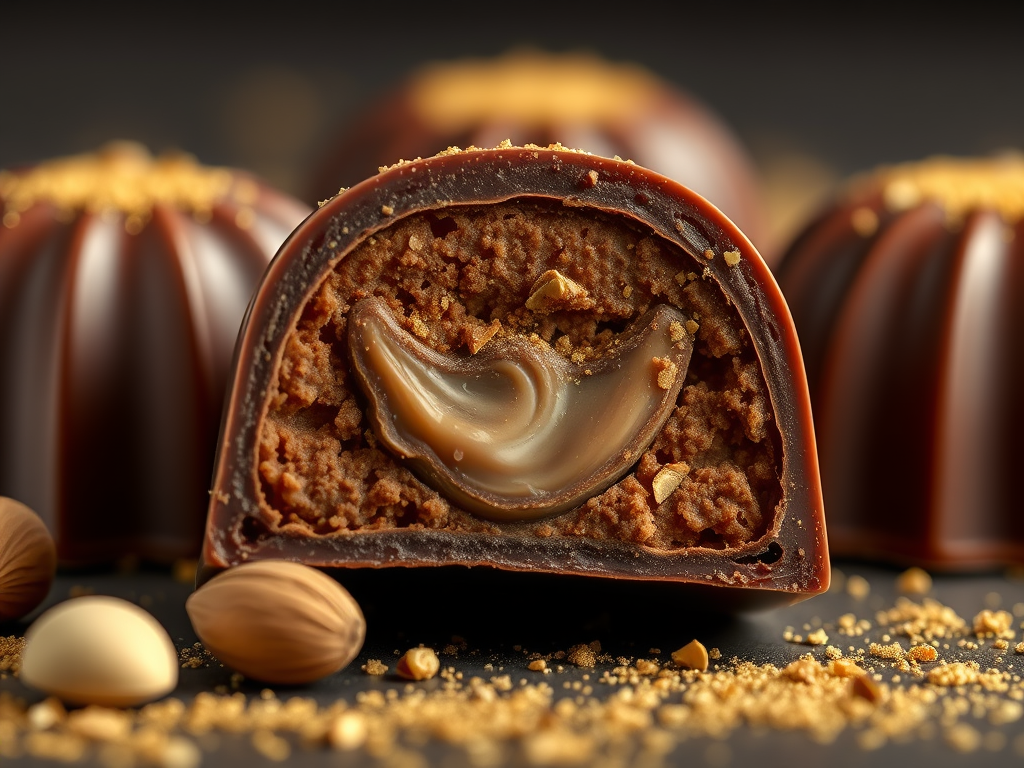 - Birleştirin: Donan çikolata kalıbının içine bu harcı doldurun ve üzerini tekrar eritilmiş çikolata ile kaplayın.