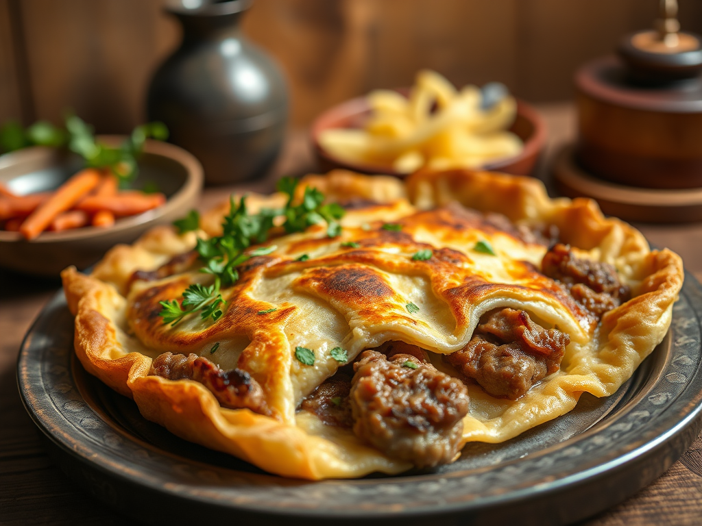 İnce açılmış hamurun içine kıyma, peynir veya ot konularak sacda pişirilir. Yanında ayran veya yoğurtla harika gider.