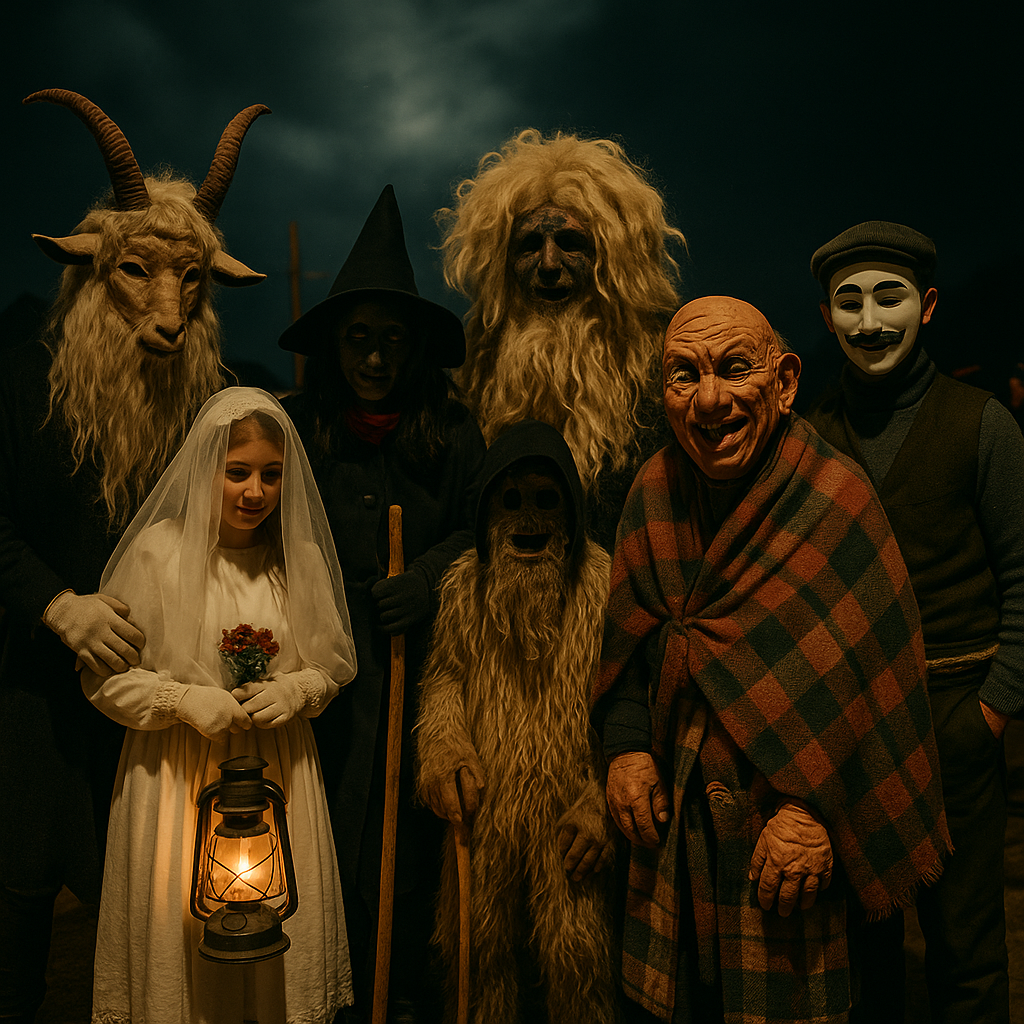Children and young people dress in different outfits—often funny or mysterious—and move from house to house, singing traditional poems (manis) and spreading joy.