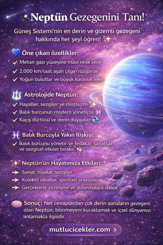 Bu yazıda Neptün gezegeninin özellikleri, bilimsel gerçekleri, astrolojideki anlamı ve insan hayatına etkilerini tüm detaylarıyla ele alıyoruz.
