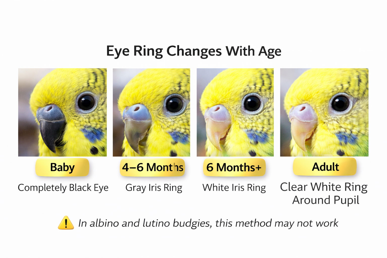 📌 If there is a visible iris ring, the budgie is usually not a baby.